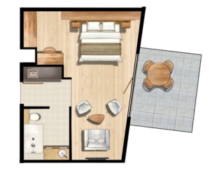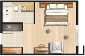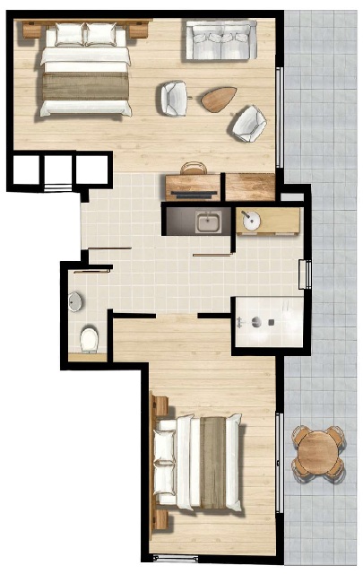 | 2ベッドルームアパートメント | 1 | 44 | ✕ |